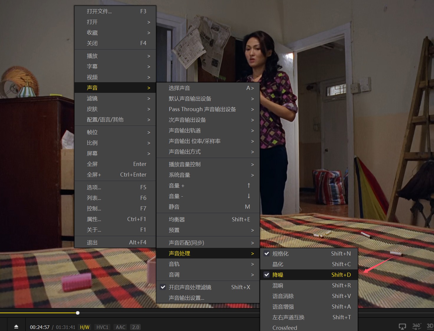 如果影片噪音大,请在播放器开始降噪。