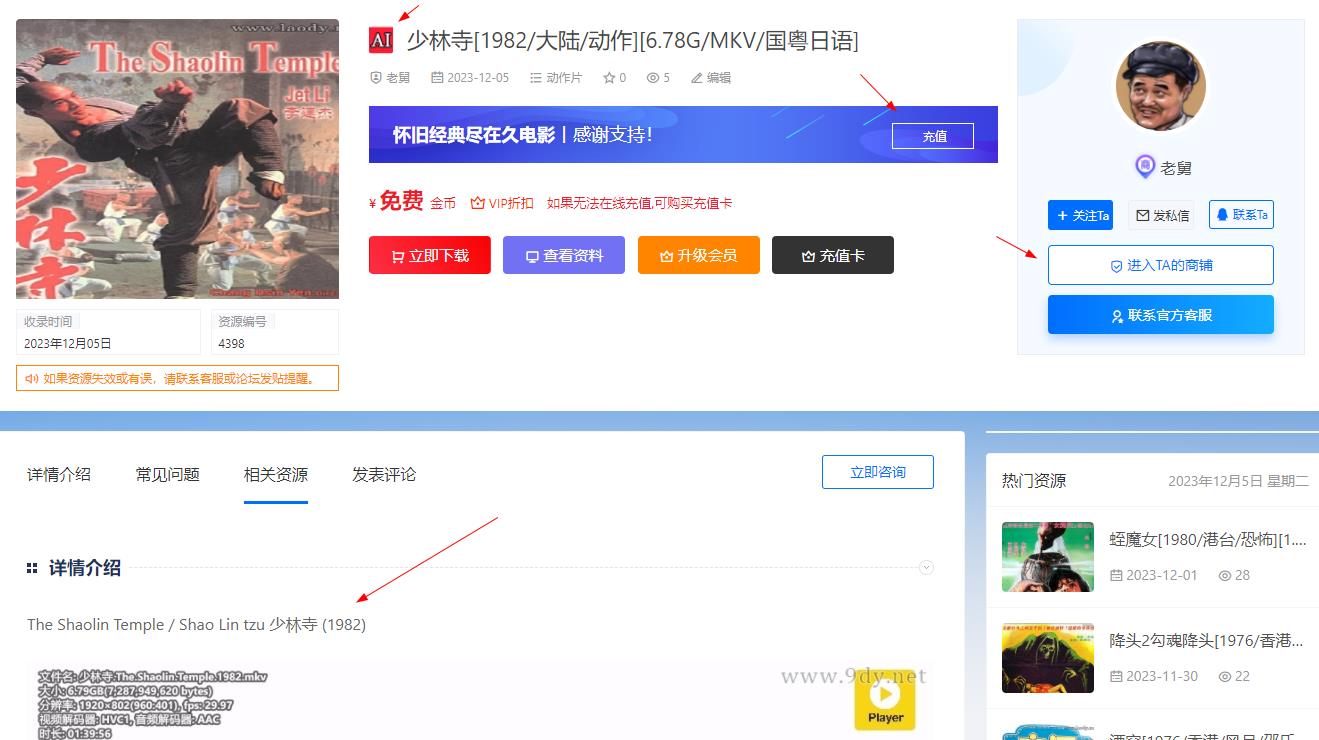 进入TA的商铺,可以查看当前用户发布的所有资源。