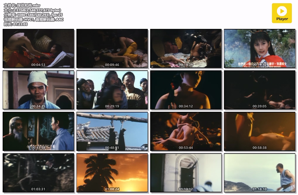 这部功夫神作,在30多个国家上映,缔造了影史上一个奇迹,但是影片武打动作设计,较为平庸,毫无亮点,在港台和国外上映的版本,有一半的故事被剪掉,加入了一些限制级的重拍镜头,改名邪侩。不同片商还剪辑成不同版本,邪僧相较于採花和尚,剧情更多一些,限制级的镜头更少一点。邪僧画质很差,就不发表了。一半国语一半粤语,懒得搞音轨了。