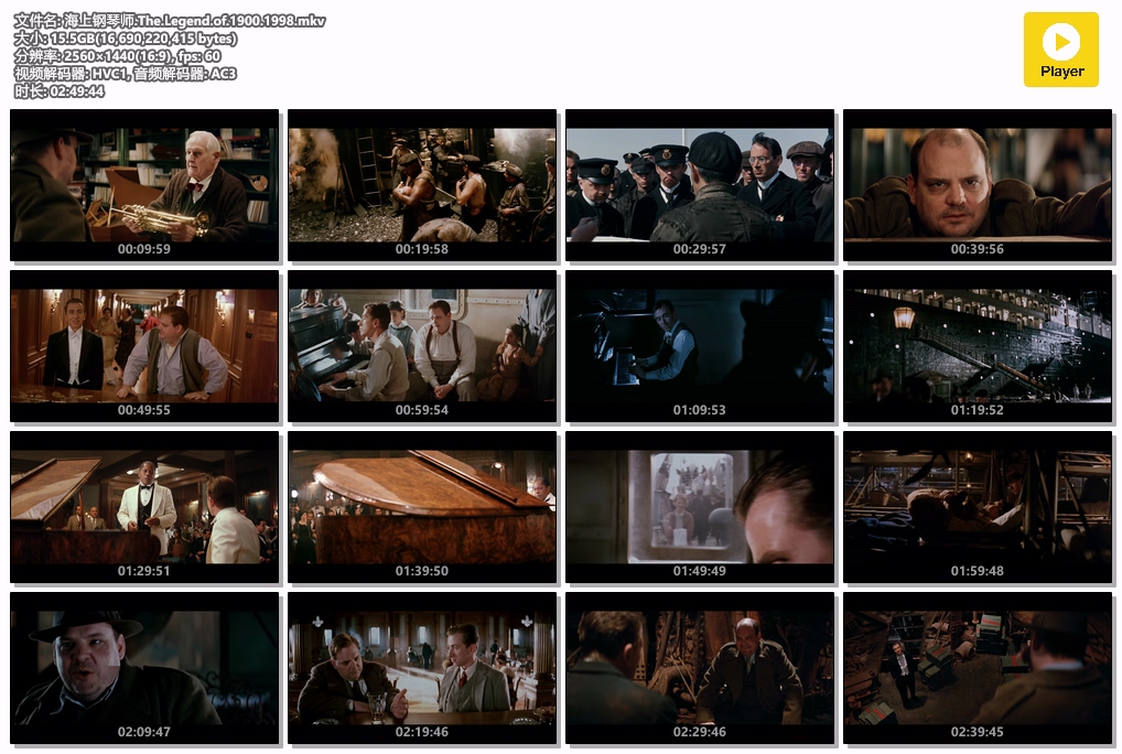 又名: 声光伴我飞(港) / 一九零零的传奇 / 1900海上钢琴师 / 传奇1900 / The Legend of 1900 / The Legend Of The Pianist On The Ocean